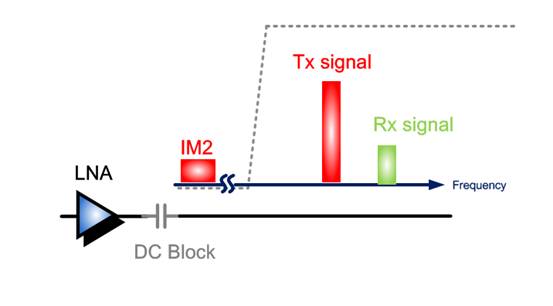 The strong IM2 may cause LNA to saturate, so as to degrade the RX LNA signal