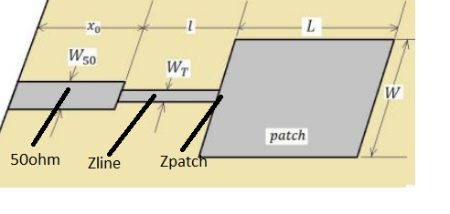 So while I calculating the lambda/4 feed line width, I use chracteristic imp of the patch. Zf: sqrt (Za+50) formula.