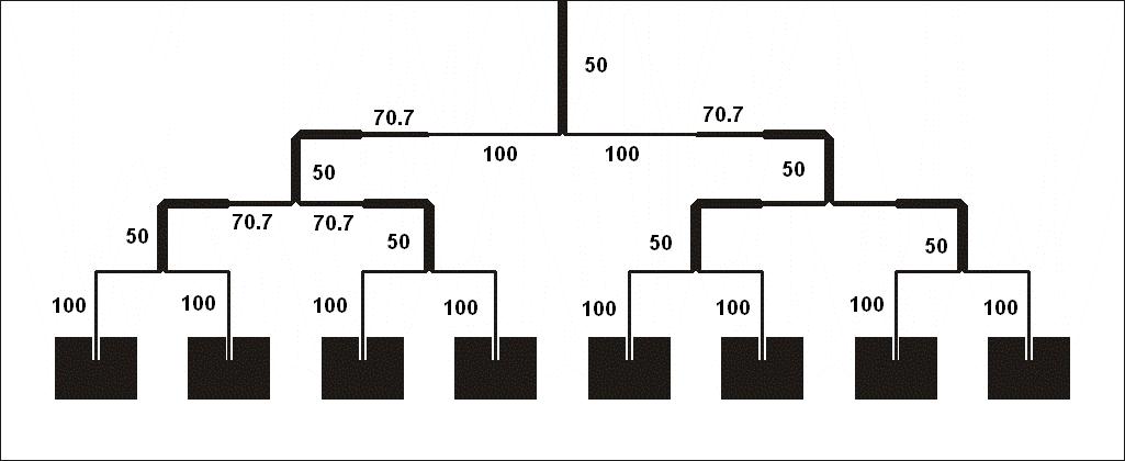 Moreover, Normally there is a 50 ohm feed to the Patch, but i have seen that in corporate feed the input impedance to the patch is 100 ohm. Like one in the attached figure