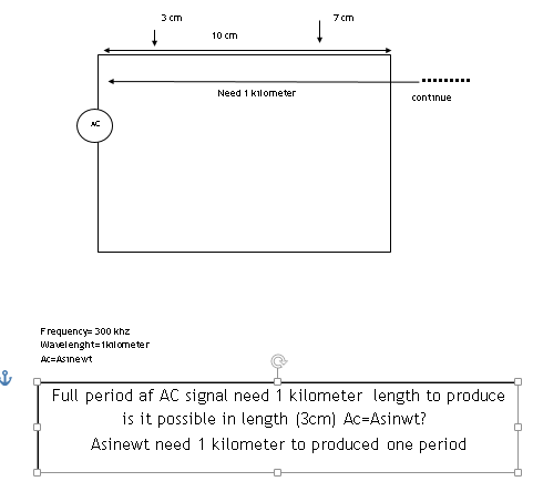 do you agree the 300 khz sine wave need 1 km wavelenght to complete one period? so pleuase show below image and answer my questions in image thanks.