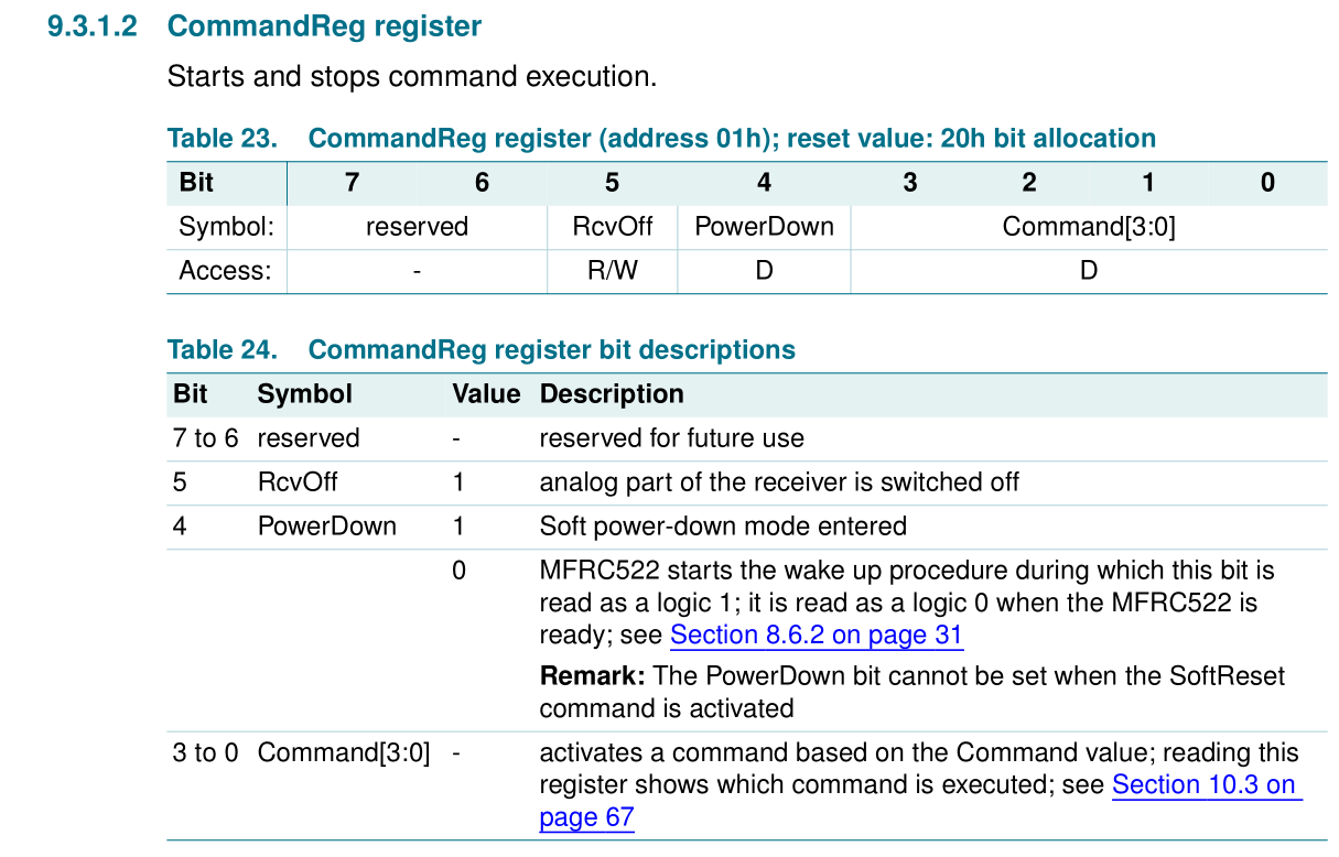 These days , I am learnning rc522. Today , I did a simple test. I use Uart communicate with rc522. I want to read the value of the register 0x01.But I find the rc522 always returns the same number I send to it .