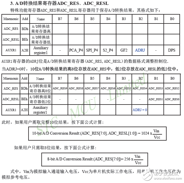 (ADC_RES[7:0],ADC_RESL[1:0])=1024*Vin/VCC 这是如何理解?