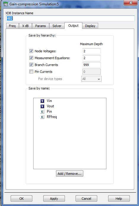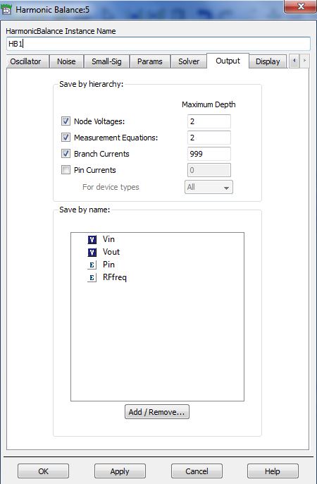 2. Variables like RFPwr do not automatically get added to the dataset to be available in the Data Display to be able to use it in an expression. Edit the HB Controller Output Tab and add RFPwr to the list of Save by name variable values prior to simulation.