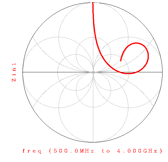 In the first figure, when I put marker at 2GHz, It gives Zin1=49.774/-0.077, impedance=-52.050-j0.003. Hand calculaton says it should be around 50ohm. So it looks Ok.