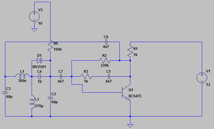 What are the design goals? Is it supposed to oscillate at 50MHz with the varactor diode in place?