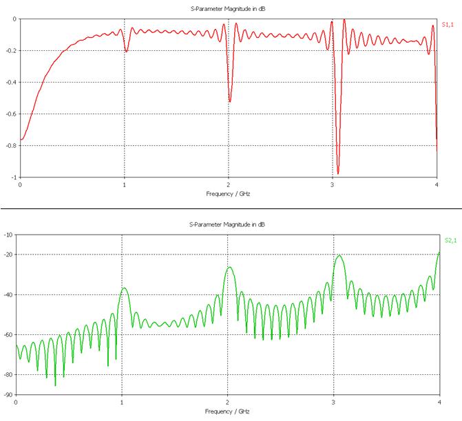 Finally I make a boundary around my microstrip; the box having a height of 150mm which overlap the entire structure along with ground plane. When I simulate this design on HFSS it give some spurious results even it isn?t showing periodic resonances,