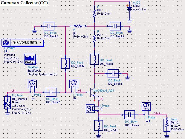 My objective is at 2.14GHz: (1) the CB amplifier works as a ?current follower? (voltage amplification); (2) the CC amplifier works as a ?voltage follower? (current amplification).
