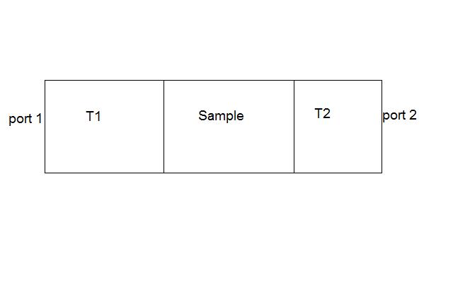 the easiest way is to remove the sample from center and connect to sides of WG the you have T1*T2, and the shorten one side of this new (T1T2) part and have some equations to be solved, (8 eq. 8 Unknown) but it is too time consuming. is there any other way?