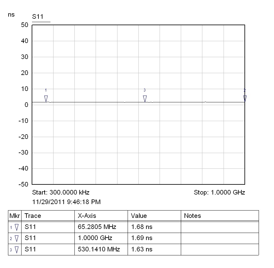 I took smith chart and delay readings with some length of coax then i cut the cable to reduce length and took again the same measurements. ( i put smith chart marker to log magnitude format)