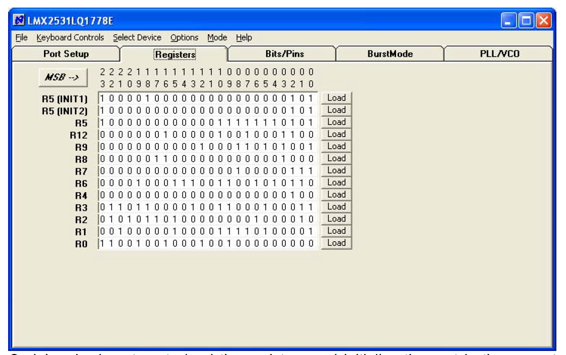 what values i need to set for the internal register of LMX2531LQ1778E