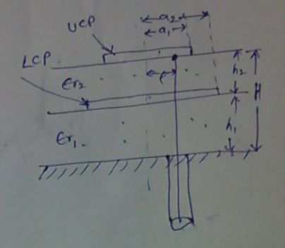 I am simulating a slotted stacked circular patch antenna with a coaxial feed as shown in the figure. when i drew the same using HFSS i got two errors stating that the inner probr of the coax is intersecting with two substrates. i cut out a slot from the infinite ground plane but not from anywhere else. Do i need to cut one more slot at the junction of the two substrates.