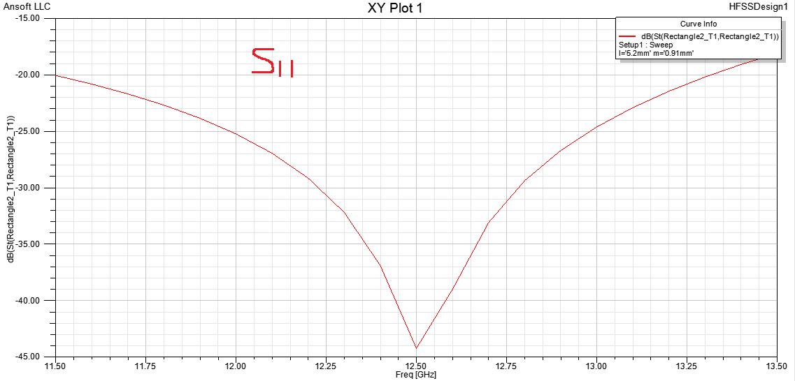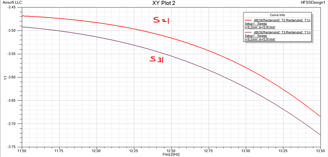 I want to get the S21=s31>-3.5dB during the frequency range 12GHz~13GHz.