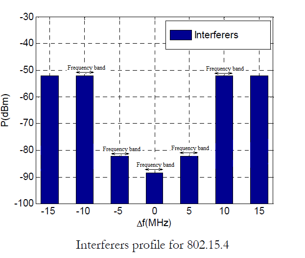 After a long a research i find the standard interferer profiles for 802.15.4 as shown in this figure.