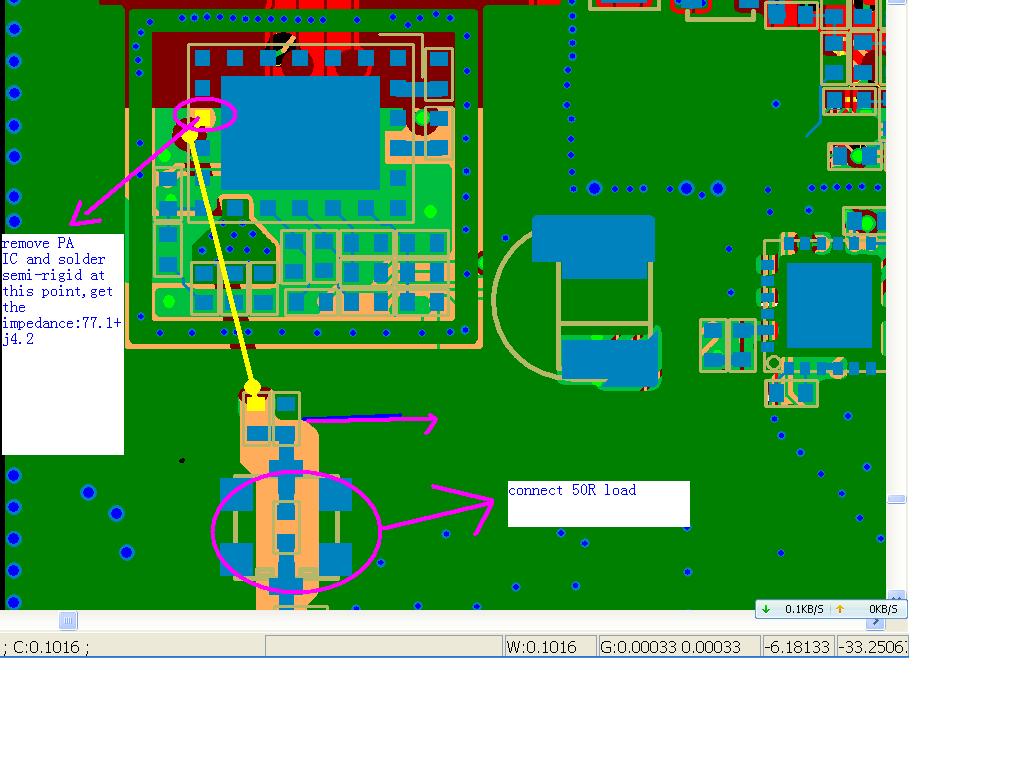 I am reading a paper about the match process of improving PA effeciency.(Vendor give the load pull impedance:44.52-j22.03)The paper introduces first measure the point 1 impedance:77.1+j4.2 (that remove PA IC , solder the semi-rigid at PA output pad,and remove the shunt components,connect series with 0 Ohm) ,then match to 44.52-j22.03.