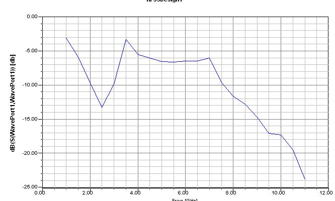 Any one can help to impove this design to cover 3-11 GHZ with loss gain less than -10