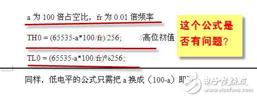 下面这个公式,把占空比和频率改了之后,我觉得怎么好像跟上面的公式差了100倍啊?分子扩大100,分母缩小100,那还有100哪里去了?实在是费解了!