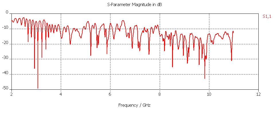 I posted here the s11 (even with ebg substrate replaced ground). The ebg is designed to act as AMC at 5Ghz. Can u give me some suggestion for this.