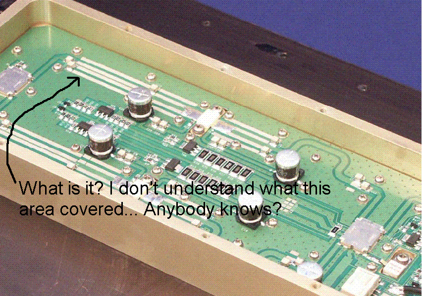 I have the picture of Rf amplifier attached below. And some miscrostrips are covered and i don't know what is it. Anybody could help to understand what is it? What was it done for?