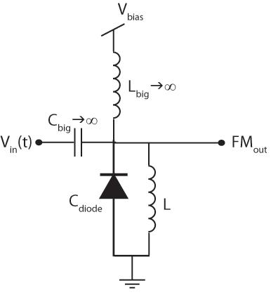 Vin (the modulating signal) will vary the reversed-biased diode's junction capacitance. As the capacitance changes, the resonant frequency of the diode capacitance/inductor will change. The diode capacitance/inductor are a resonator in an oscillator.