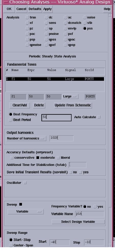 If the resonant frequency is 5gHz and the input power is -20dBm ,how can i set the pss window?Thanks!