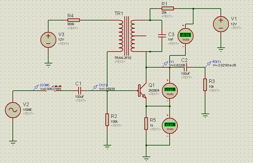 Eliminate R1,C1, V2, put a bypass cap from R4-transformer junction to ground.