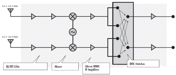 the LNB contains , 1) 2 LNAs for vertical and horizontal reception