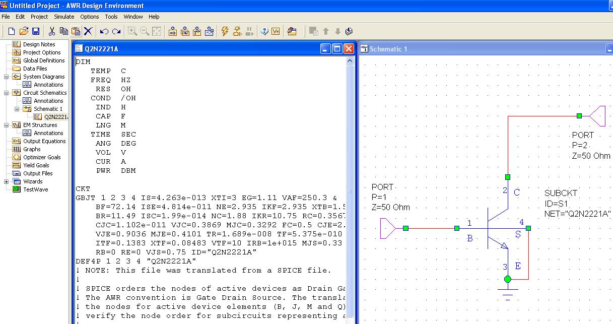 I have to make a mixer using a BJT transistor. My mixer has to be based on the mixer suggested in the pdf file I uploaded here. So I need to add to my elements library the BJT transistors 2N2221A and 2N3308.