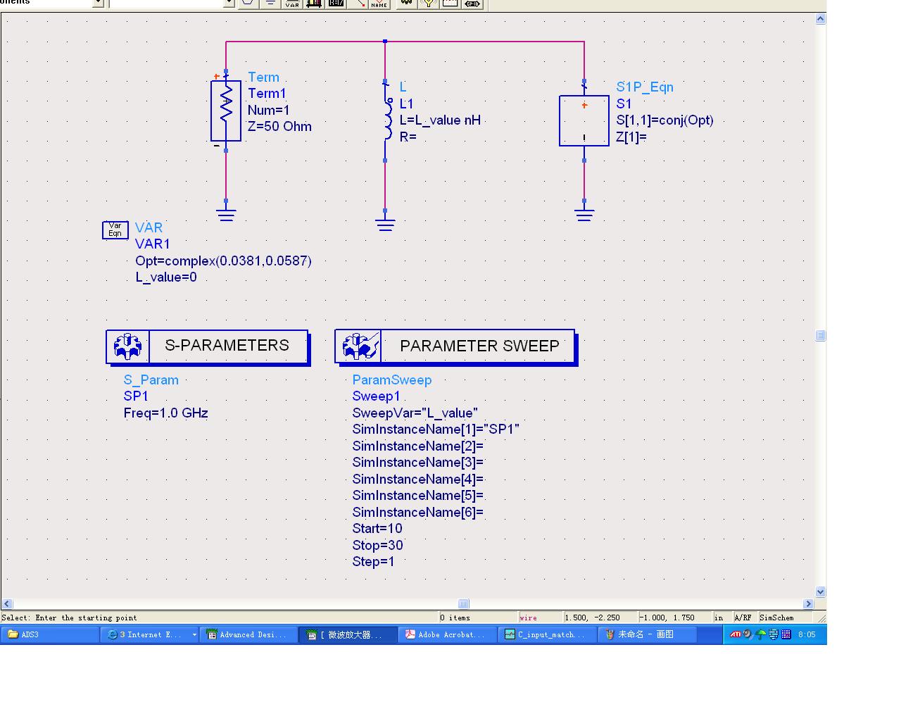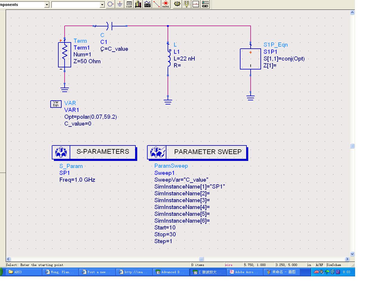 My question is why select L=22nH and C=12pf,because the result S11 not equal Sopt,anybody kindly tell me the reason?