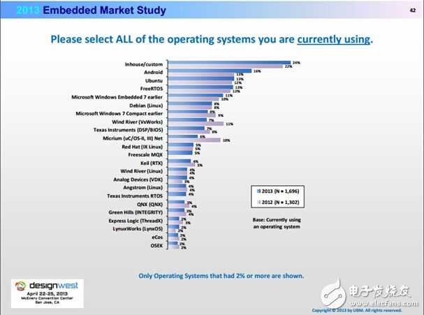 2.1.3 当前流行的嵌入实时操作系统(说明:2013,2014和2015年度的嵌入式市场分析报告可以在这里查看: