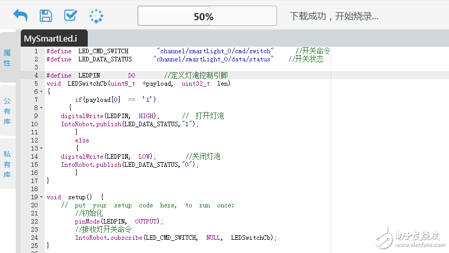 - IntoRobot.publish(LED_DATA_STATUS,"1");