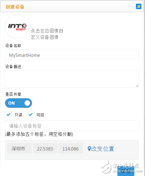 1 创建设备,同上,在设备展示下的我的设备,点击添加,输出设备名称,并选择可控。由于默认是智能灯控制设备,如果想实现其他设备的功能,需要编辑控件,具体看下面第三部分的智能家居设备控件的编辑。