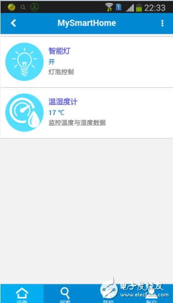 (4)保存后,就会在手机APP下面生成对应的设备(如果没有,下位刷新或关闭后重新启动,一般是可以的),点击进去,可看到有两个控件