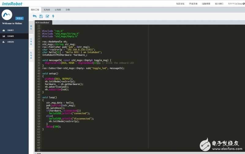 IntoRobot自带wifi,可以直接兼容ROS的tcp/ip协议。