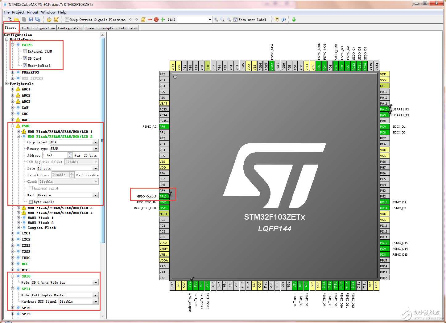 接口与液晶驱动IC连接,实现数据交换。YS-F1Pro预留16bit的FSMC液晶接口,我们同时提供了