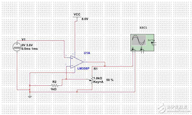 但实际电路即使将R1调至1K,也只能放大到4.25V左右。如果调大运放的供电电源,比如调到12V左右