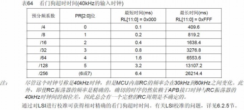 独立看门狗的特性是,要利用片内的40k RC振荡器作为时钟据(说这个RC是相当的不准),优点就是,即使CPU主晶振