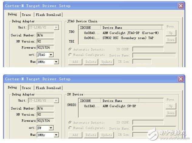在这种连接下,可以自由设置STM32使用SW模式或JTAG模式