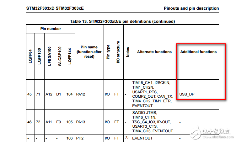 如图所示STM32F303VE上面的USB在IO的额外功能上面,需要怎么设置才能打开USB的功能,我尝试下来能进中断但是RAM的数据不对,望有经验的人给以指教,谢谢