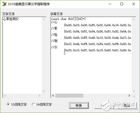 为了实现图7所示的显示效果,可使用字模提取软件来构建小字库的方法来实现,其界面如图8所示。