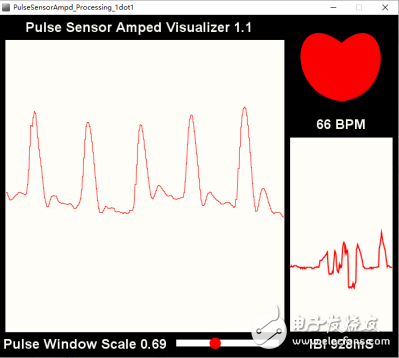 在外挂RS232串口的情况下,使用心率传感器所配的专用软件Processing,可绘制出图10所示的心率波形图。