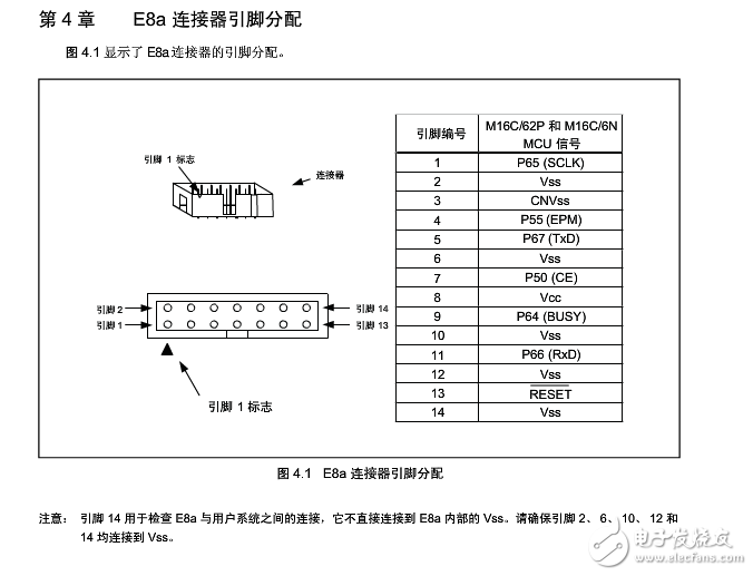目前上手有E8A烧录器和客户系统。电脑上也装瑞萨的FDT下载软件。不知道怎么让E8A和客户系统连接起来下载程序。E8A上是14Pin客户系统上是10Pin.客户上有的MCU是M30627FHPGP的。20分献上求高人指点E8A和客户系统上的M30627FHPGP芯片连接。看了几天了也没有头绪。