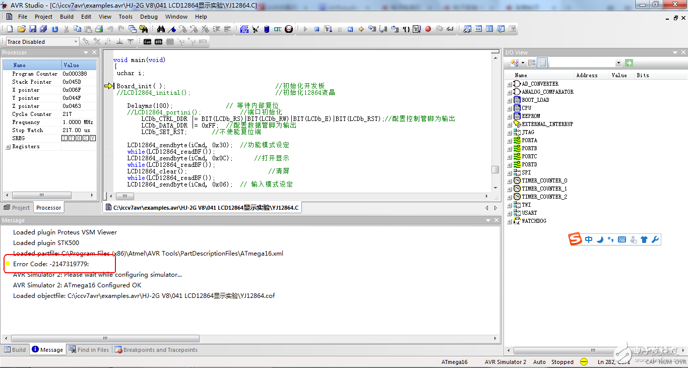 avr studio4仿真ICCAVR编译的cof文件,选择simulator后报错