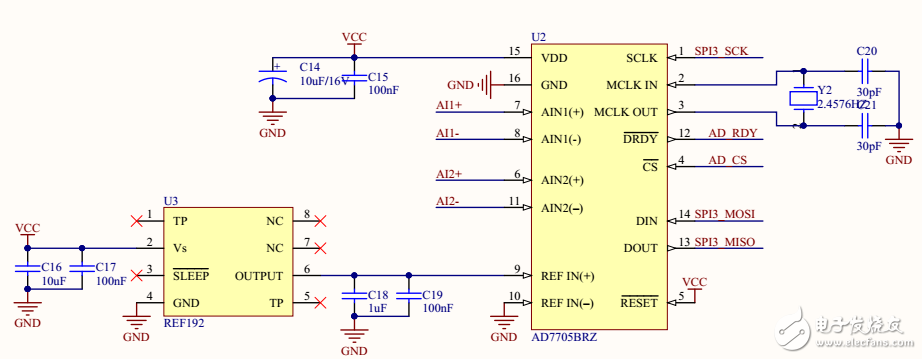 我们使用一个采样电路采集电压信号,形成以个0-2.5V的差分信号,如下图所示: