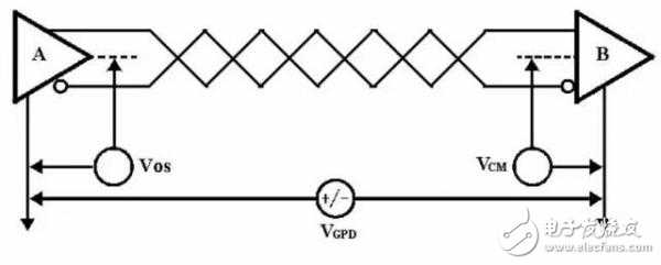 共模干扰:RS-485接口采用差分方式传输信号方式且收发器有一定的共模电压范围,如RS-485收发器共模电压范围为-7~+12V,只有满足上述条件,整个网络才能正常工作。如下图,因地电位差导致的共模干扰: