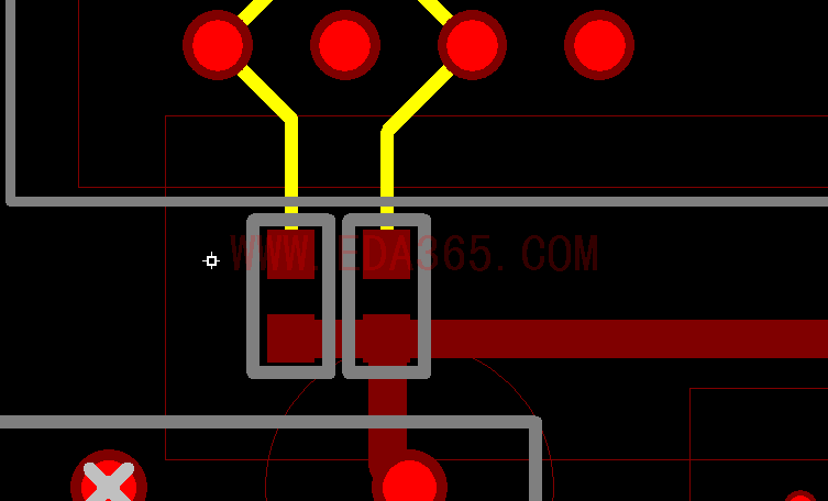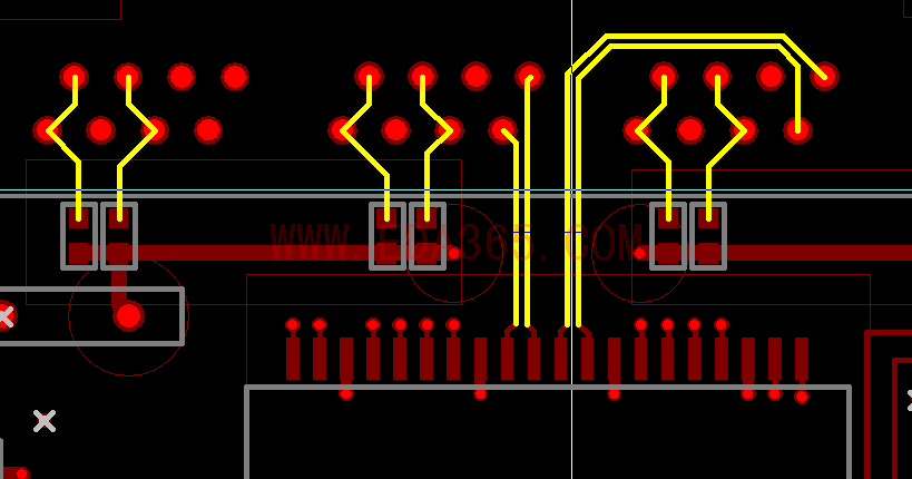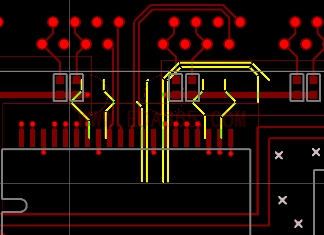 traces和vias映像的鼠标上,,最后一个动做,,利用:"s"命令把traces和vias放在刚才记录下来的坐标位置.