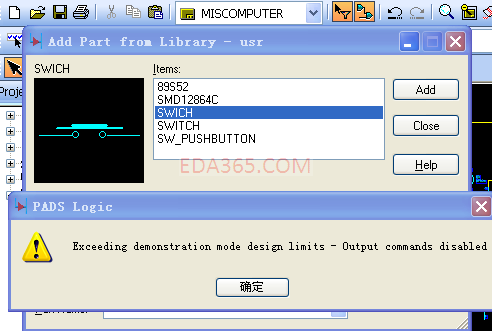 用PADS Logic设计原理图,在添加元件到一定数目(大概30个元件)时会弹出“超出示范模式,设计限制”的提示,按确定或关闭后文件保存项变为灰色而不能用,请高手指点,感激不尽!