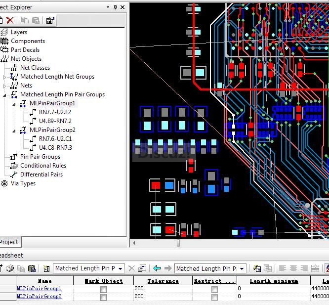 然后同样在spreadsheet里面选择查看matched length pin pair group就可以了