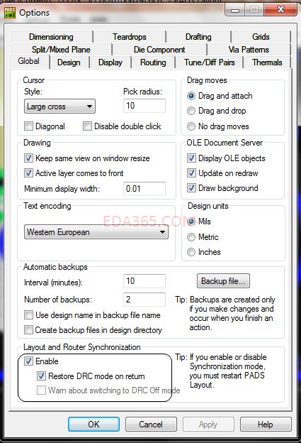 开启的方法是Tools -> Options,在Global页,左下角Layout and Router Synchronization,勾选Enable