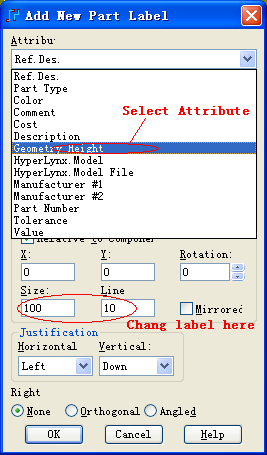 4,在”Value for XXX“中填入元件高度的值,注意单位!