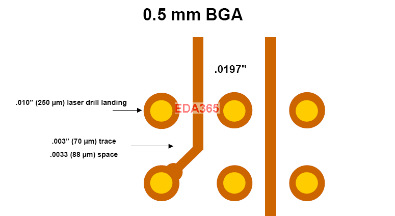点位是:UMM 我的间距是0.08和0.08 为什么在0.5距离的两个焊盘中间还走不了0.08的线。